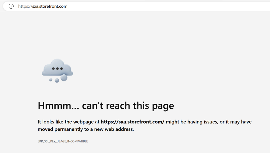 As soon as I opend the https://sxa.storefront.com sample site in the new tab, I am presented with a big surprise.
