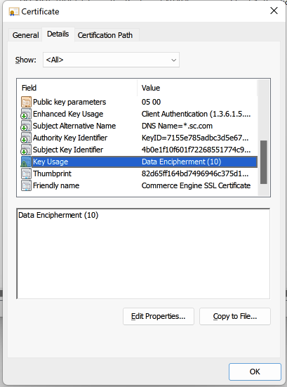 Now, it's my turn to find where Sitecore Commerce uses the Data Encipherment as the key usages while generating the SSL certificates.