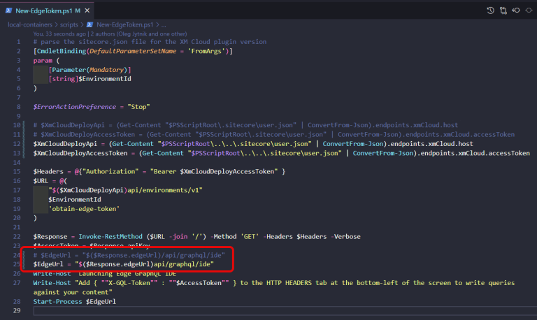 Then I tried to execute the New-EdgeToken.ps1 file to open the Edge GraphQL IDE.